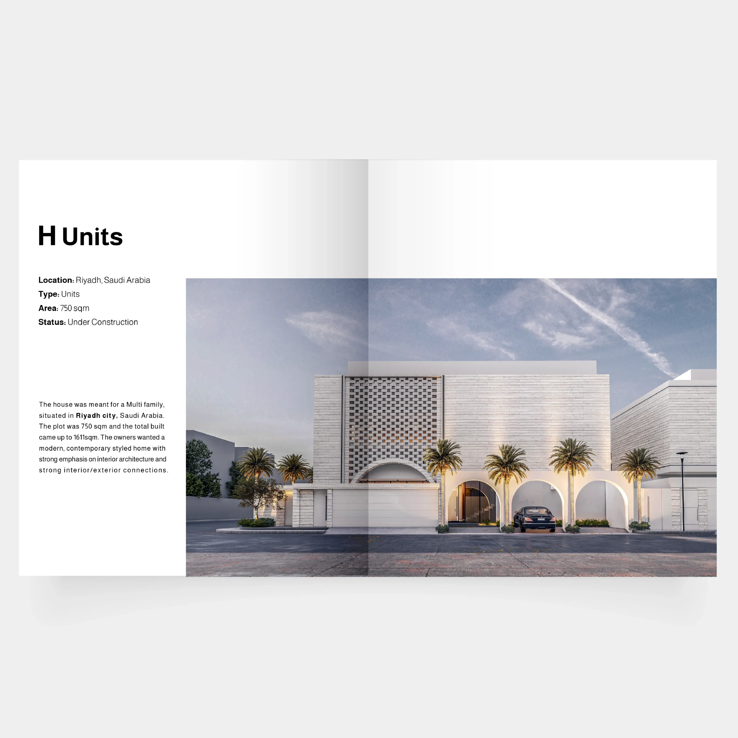 H Units Location: Riyadh, Saudi Arabia Type: Units Villa Area: 1610 sqm Land Area: 745 sqm Status: Under Construction The house was meant for a Multi family, situated in Riyadh city, Saudi Arabia. The plot was 750 sqm and the total built came up to 1611sqm. The owners wanted a modern, contemporary styled home with ...
